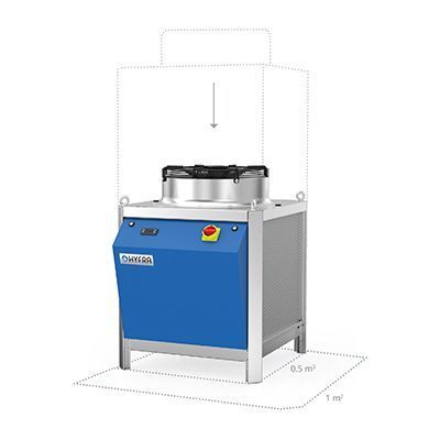 This is also reflected in HYFRA’s industry portfolio. The HYFRA Alpha circulating chiller is mainly used in filtration and offers a cooling capacity of up to 80 kW on a floor space of 1 m2 – the “Reduced Footprint” version is particularly space-saving, providing a cooling capacity of up to 16 kW over an area of just 0.5 m2. The HYFRA Sigma recirculating chiller is particularly suitable for cooling laser and machine tools, with a power range from 5 to 28 kW over 0.5 m2 up to 320 kW over just 4 m2. Both the HYFRA Alpha circulating chiller and the HYFRA Sigma recirculating chiller are also available as particularly space-saving compact versions with a height reduction of up to 40%.
