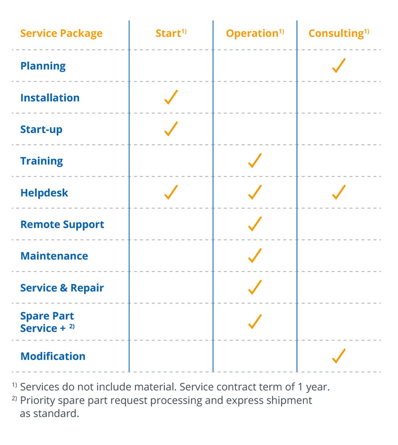 The “Start” service package includes the installation and startup of a new HYFRA cooling system. The “Operation” service package contains a number of extra services such as training sessions, maintenance, help desk support and our spare part service. If you require system planning and/or modification plus help desk support, our “Consulting” service package is the right choice.