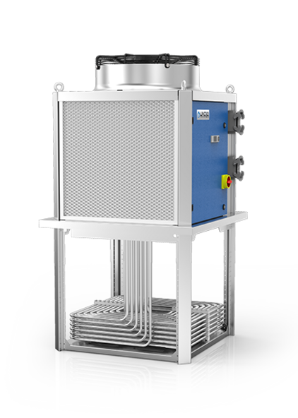 En los refrigeradores de inmersión, el evaporador del refrigerador se sumerge directamente en el refrigerante. El líquido se encuentra en un tanque y se mueve de forma continua y vigorosa para un enfriamiento eficiente. Los poderosos agitadores apoyan este proceso.